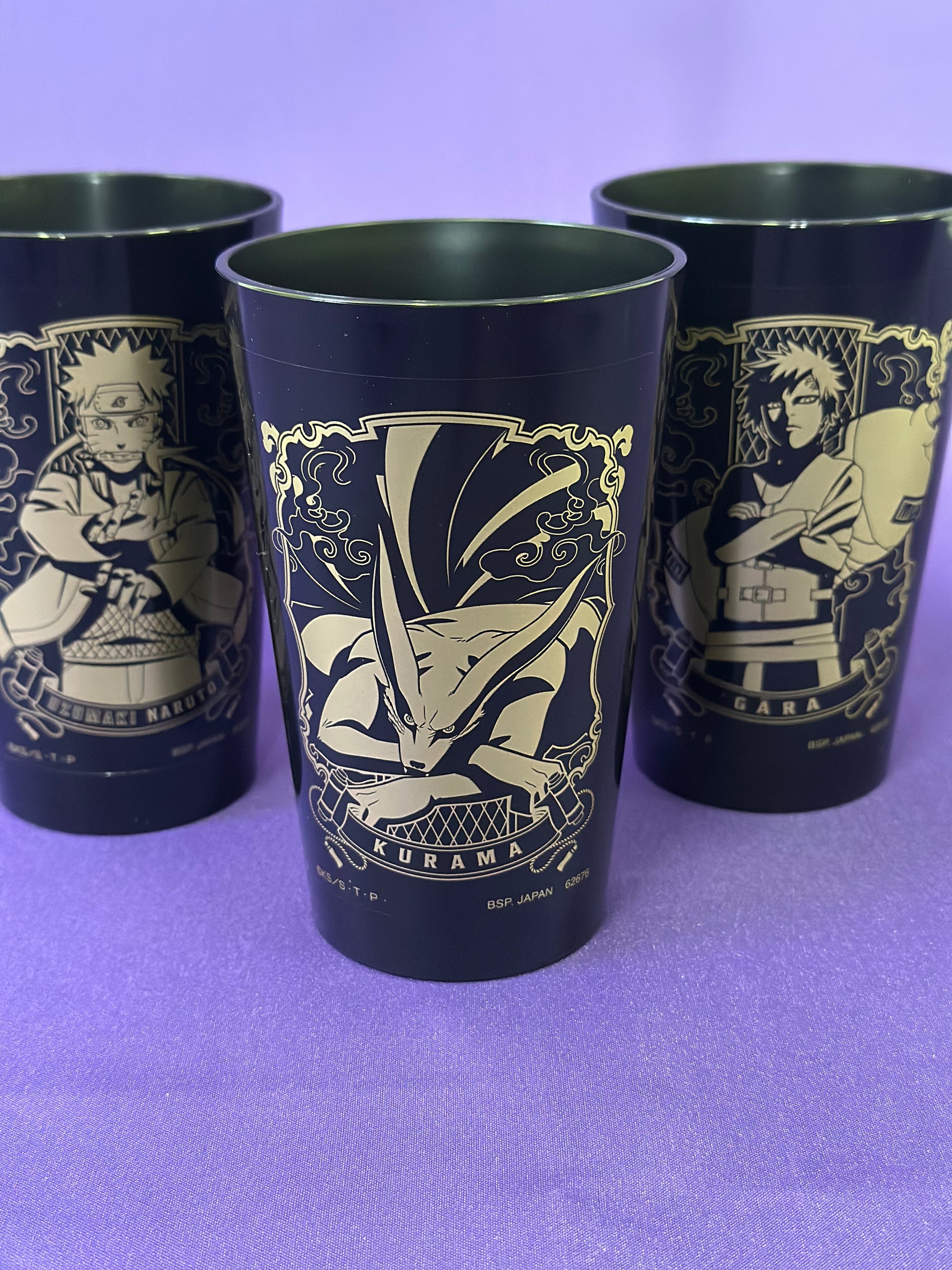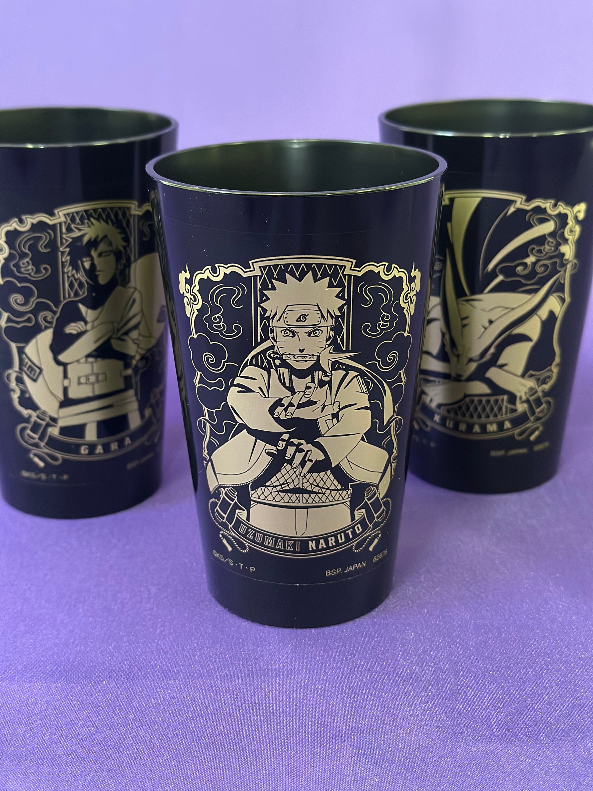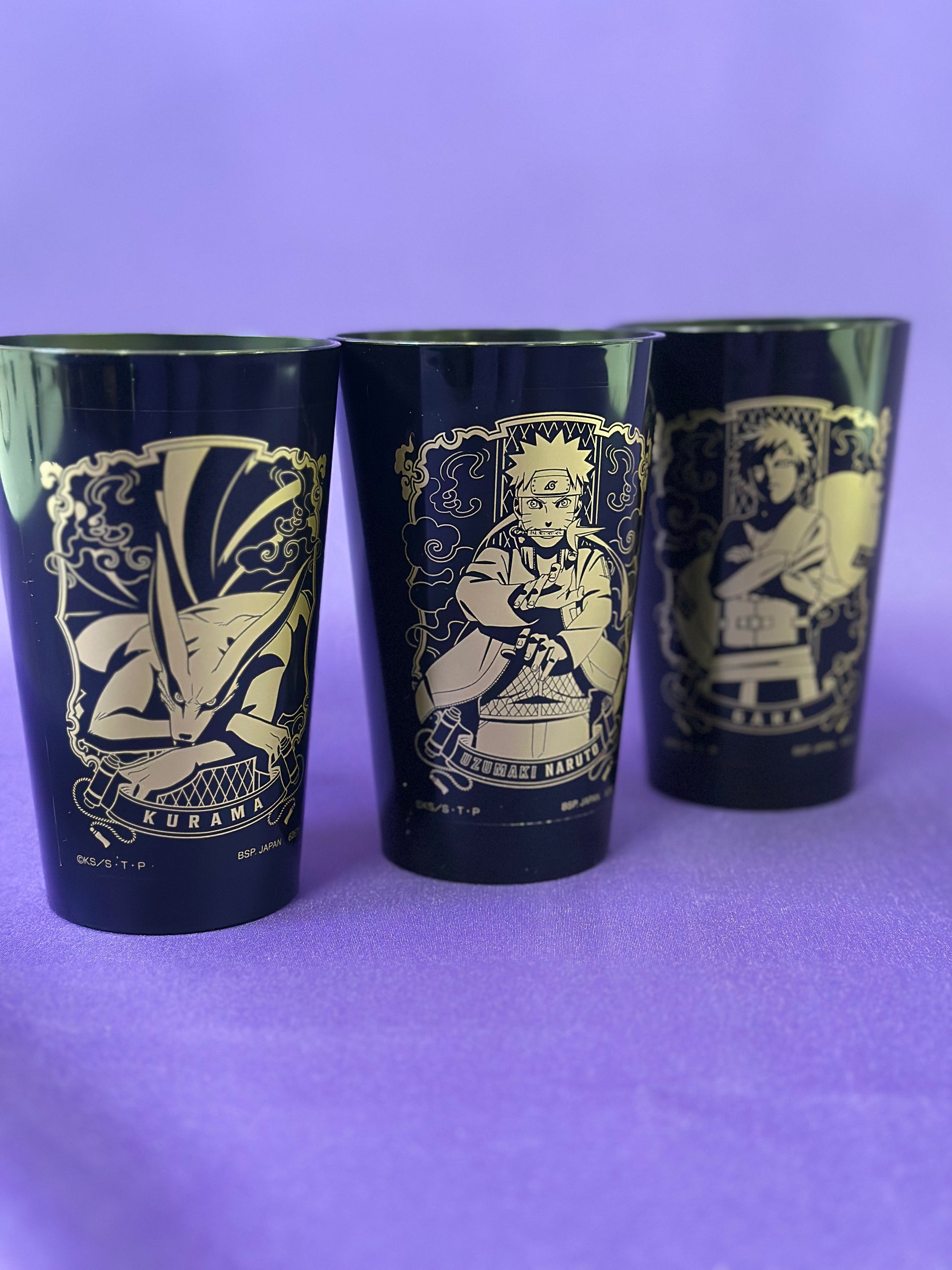 Ogni bicchiere è realizzato in plastica resistente e decorato con una stampa dorata premium dei personaggi più iconici della serie: Naruto Uzumaki, Gaara e Kurama.